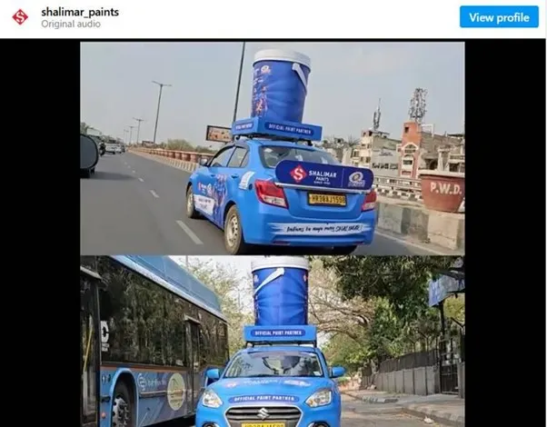 Shalimar Paints partnered with the Mumbai Indians for a fan-focused street activation using branded cars and cabs across Delhi. Visuals from official coverage clearly documented the execution of a strong event experiential marketing use case tied to sports fandom.